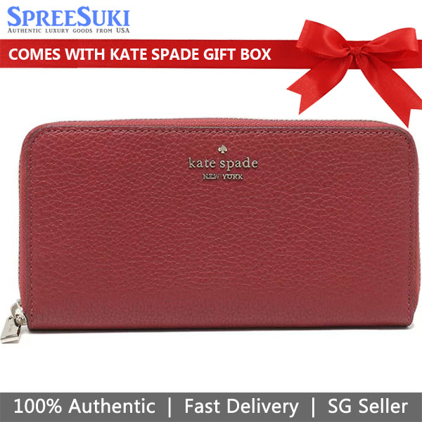 Kate Spade Wallet In Gift Box Long Wallet Leila Pebbled Leather Large Continental Red Currant # WLR00392