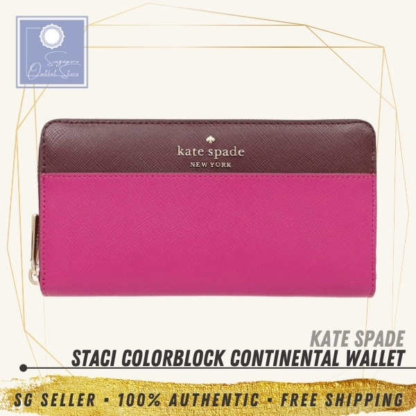 [SG SELLER] Kate Spade KS Womens Neda Large Continental Zip-Around Leather & Nylon Wallet (Multi Colors Available)