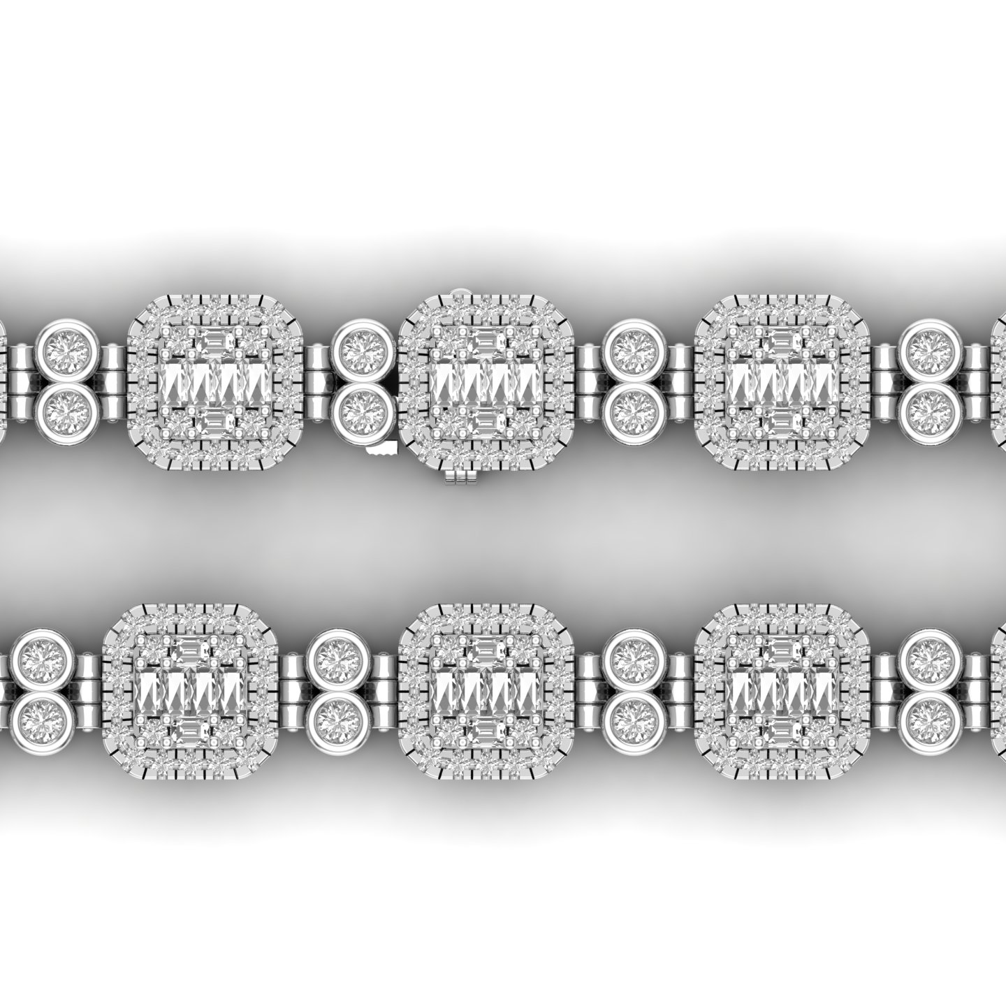 Real Natural Round And Baguette Diamond Cuban Link Hip Hop Bracelet In 14k White Rose And Yellow Gold