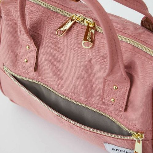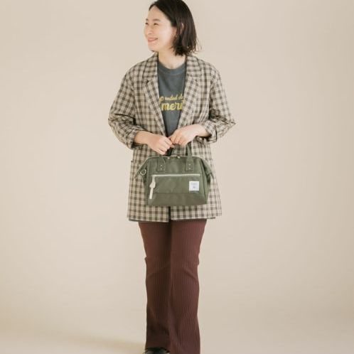 The new anello® Cross Bottle REPREVE® is made with recycled PET bottles. In addition, we changed from genuine leather suede to eco suede for the accents. The same anello® Mini Boston Bag with upgraded water-repellent surface and refined accents like eco suede zip pull and logo engraved zipper handle.
