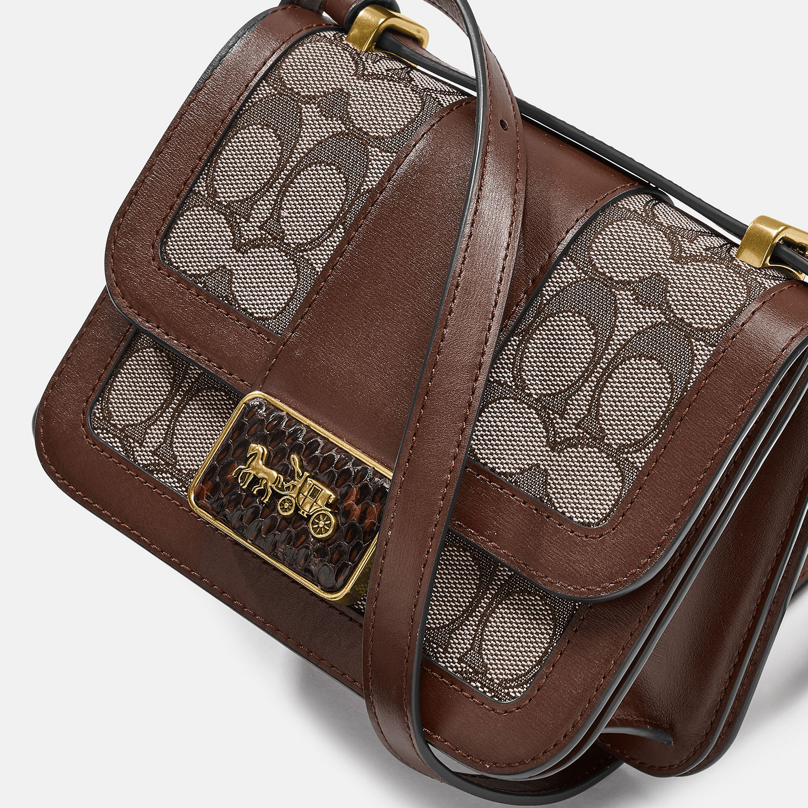 COACH WOMENS ALIE SHOULDER BAG 18 IN SIGNATURE JACQUARD WITH SNAKESKIN DETAIL
