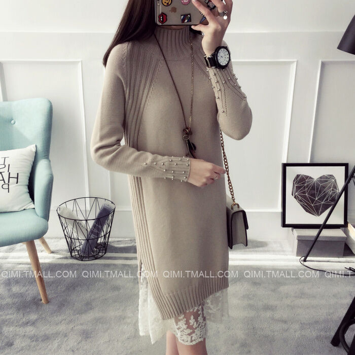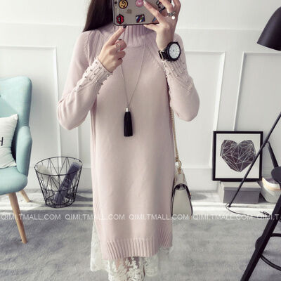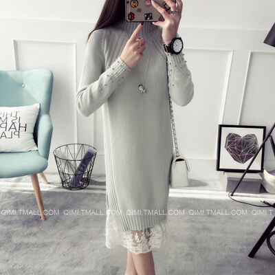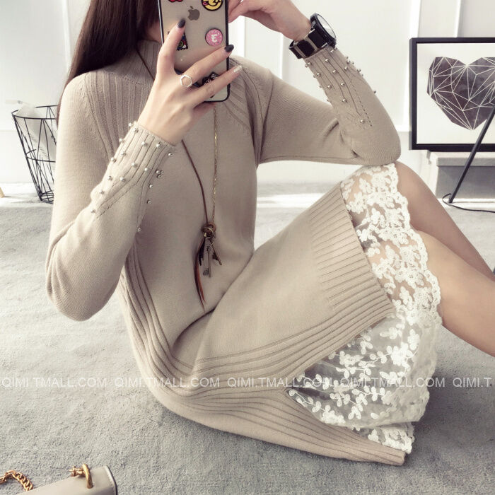 Mid-Length Lace Edge Sweater Women's Pullover New 2022 Autumn and Winter Bottoming Shirt Western Style All-Matching Sweater Dress