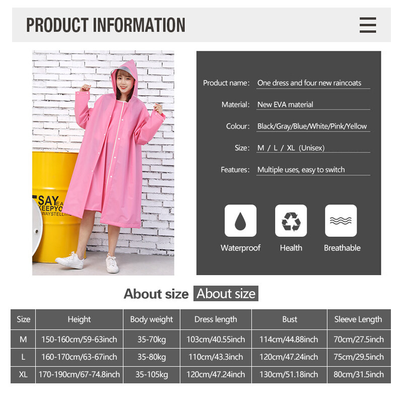 COMOLLON Rain Poncho Waterproof Reusable Breathable Raincoat for Adult Women Men