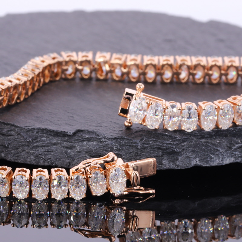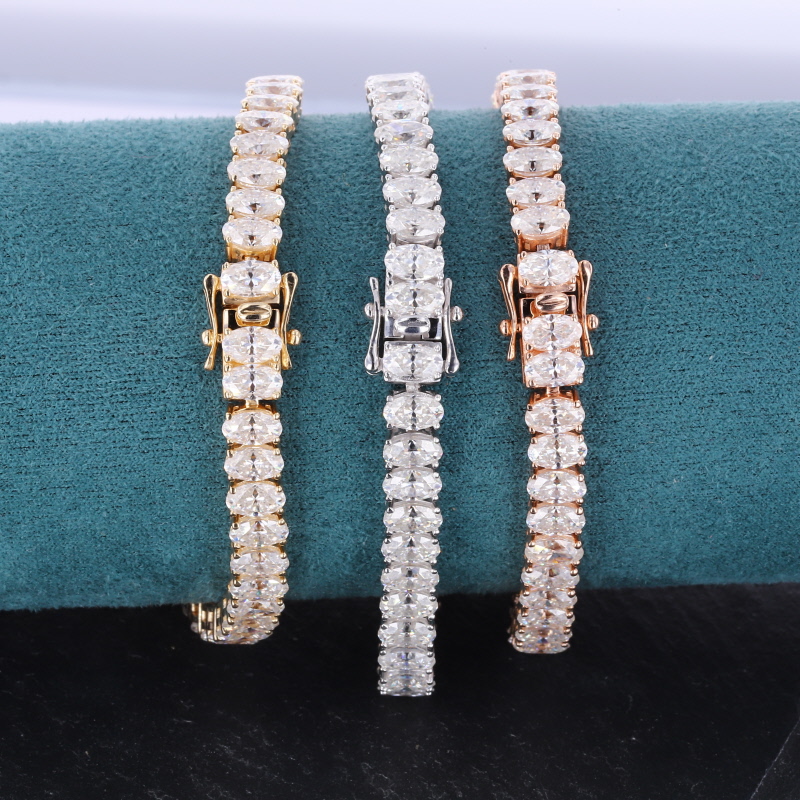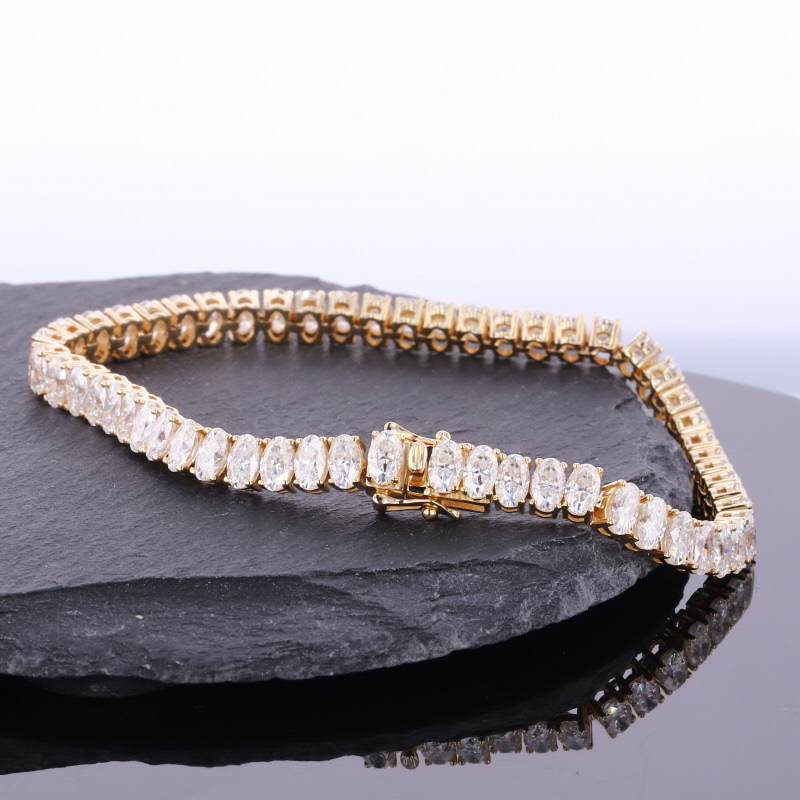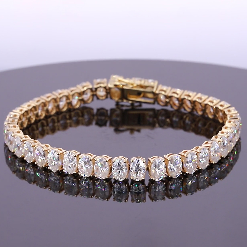 Starsgem Wholesale Hiphop Design Fancy Oval Moissanite Tennis Bracelet 14k Gold Bracelets