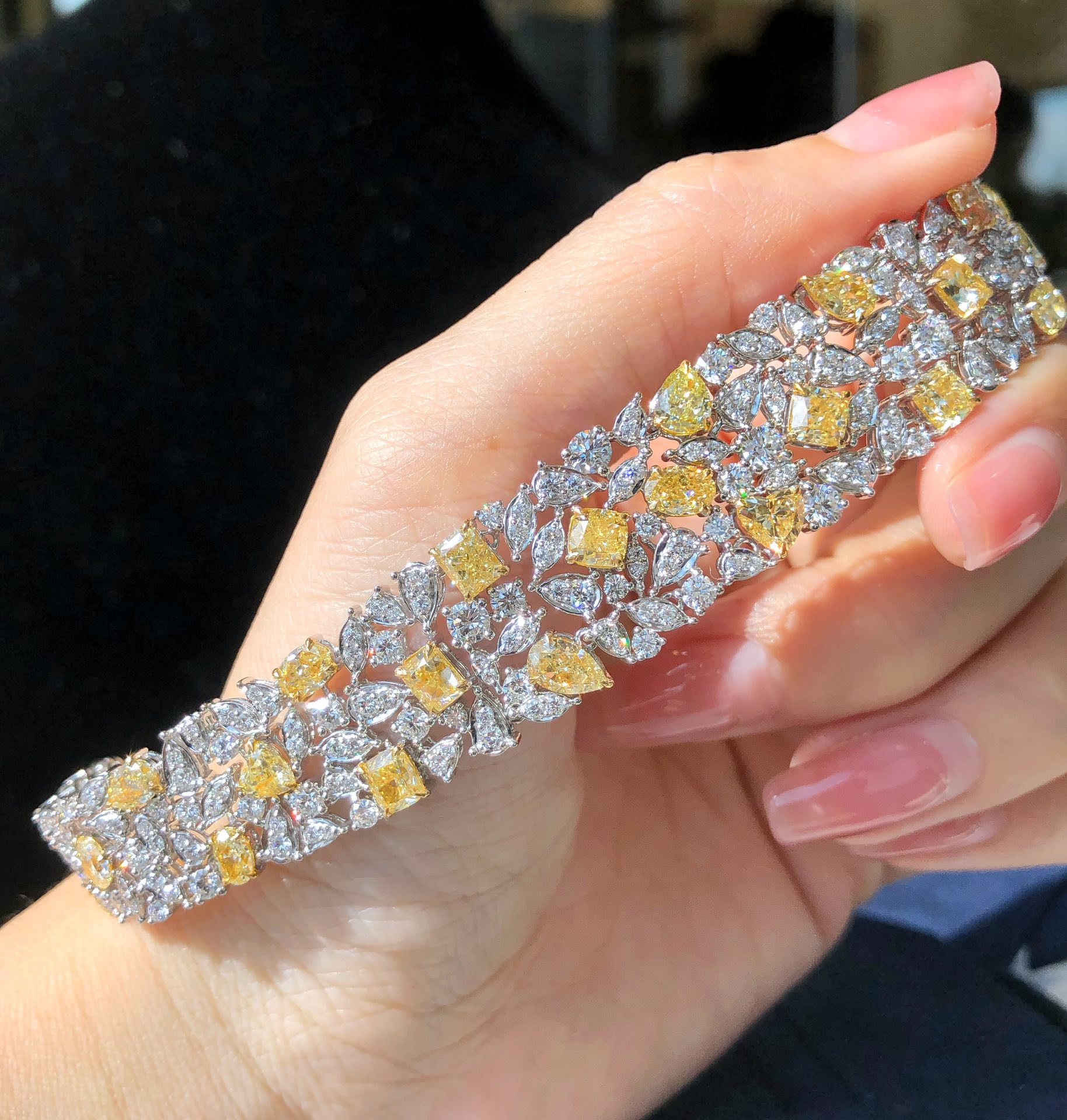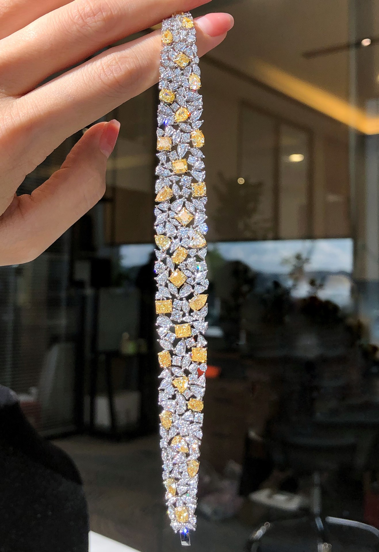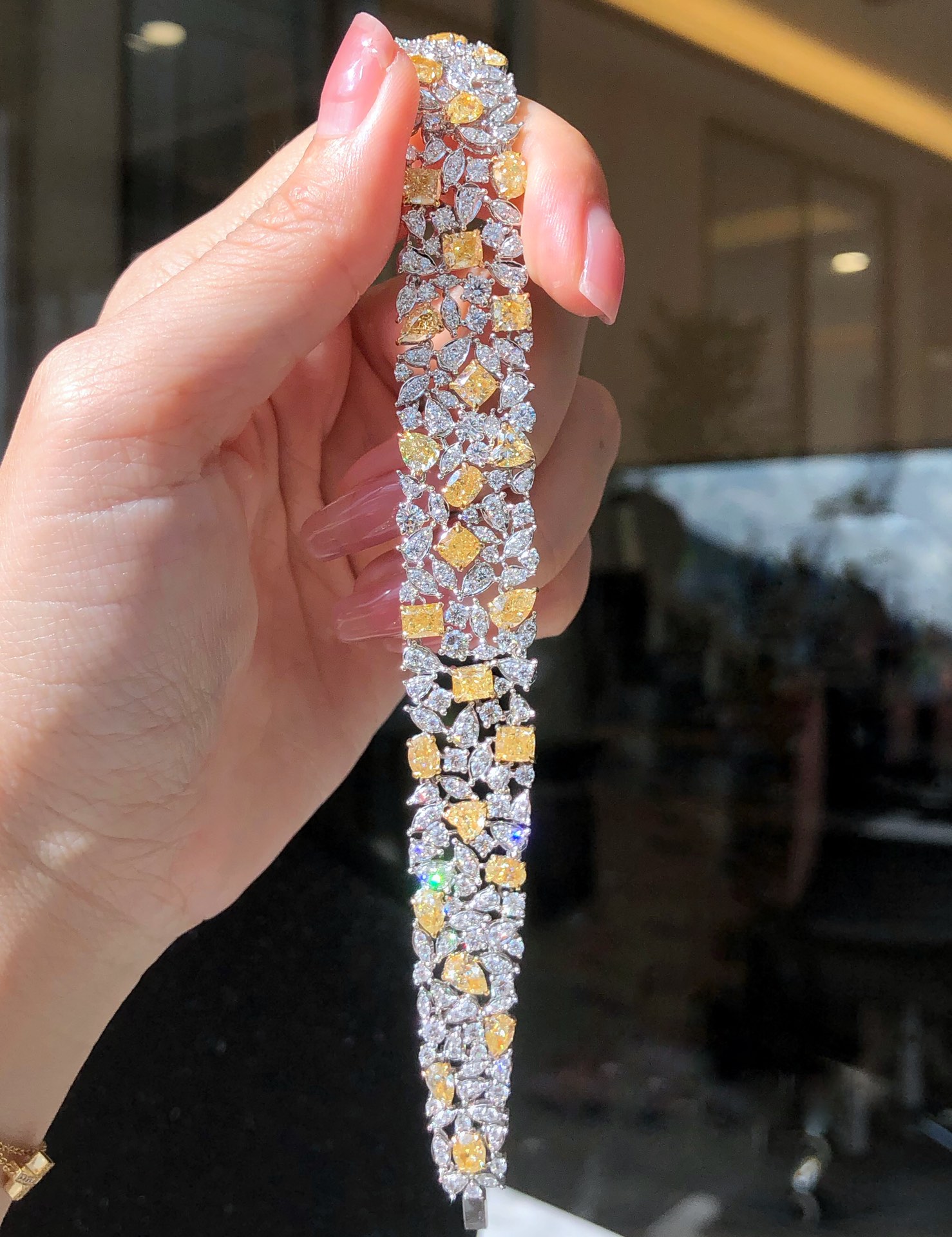 Luxury Elegant 18k White Gold Full White Diamond And Yellow Diamonds Shaped Bracelet