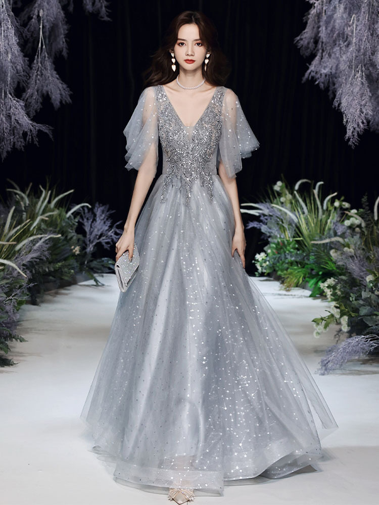 EAGLELY Elegant Luxury Evening Dress Dinner Party 2022 New Banquet Temperament Annual Meeting Catwalk Party Long Sequins Ninang Ball Gown For Debut 18 Years Old.