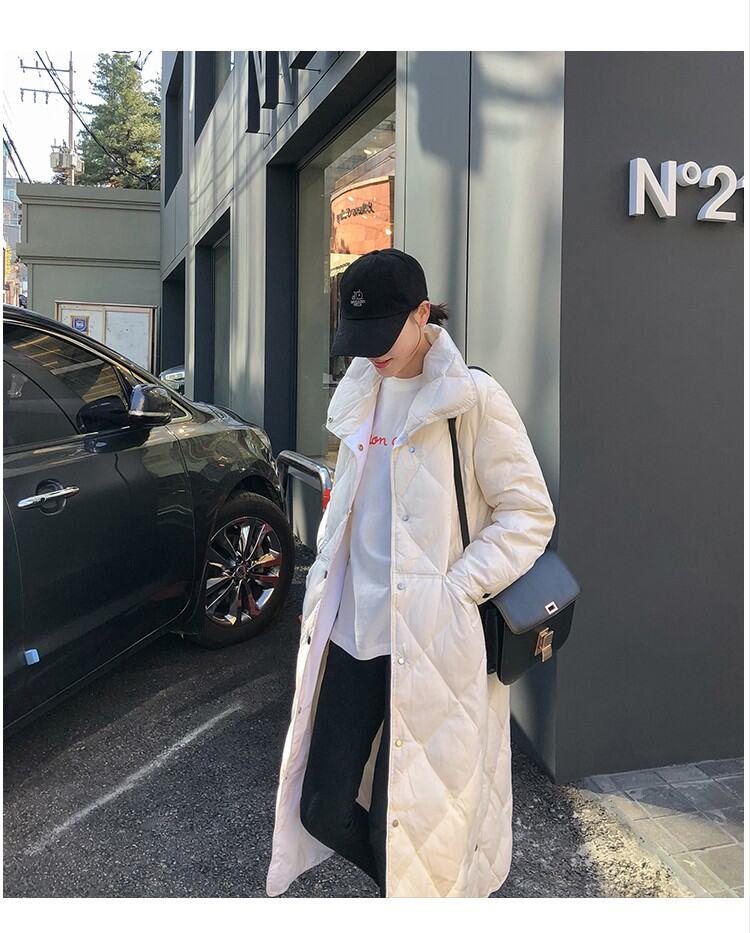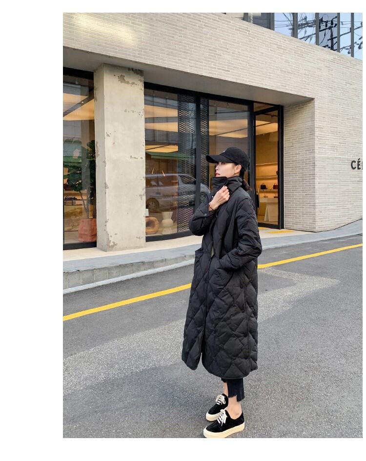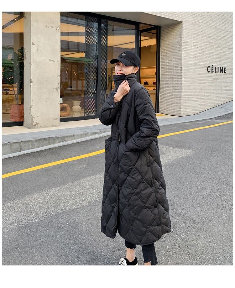 2022 Korean Style down Jacket Women's Winter New White Duck Down Mid-Length Fashion Slim Simple Super Long over-the-Knee Coat