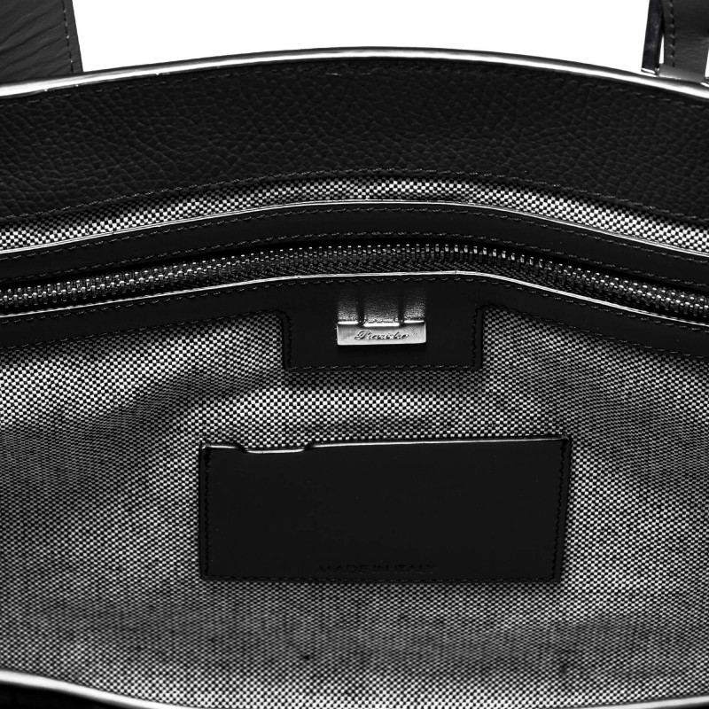 This 2 adjustable handle bag is made of tumbled fine-grained calfskin with 1 compartment with zip opening and adjustable shoulder strap.