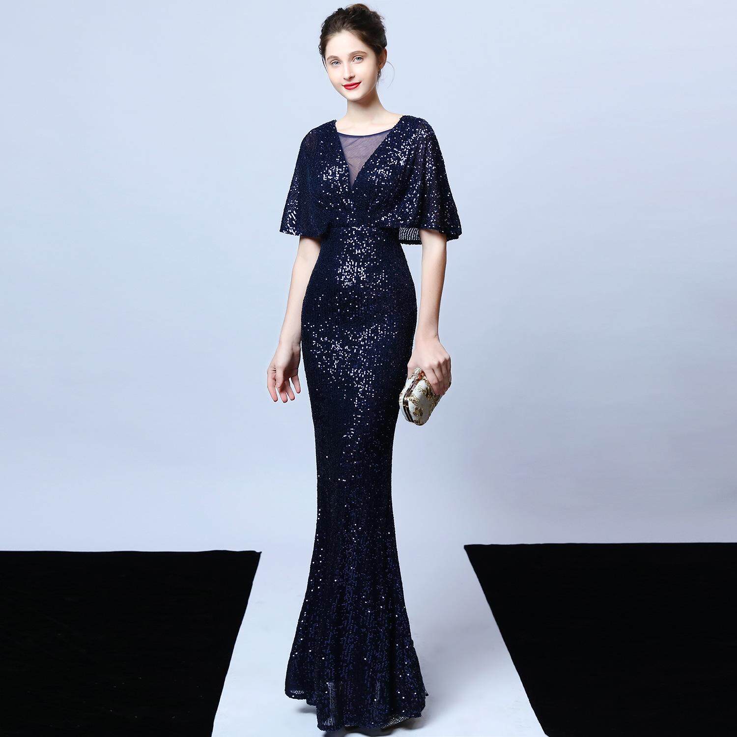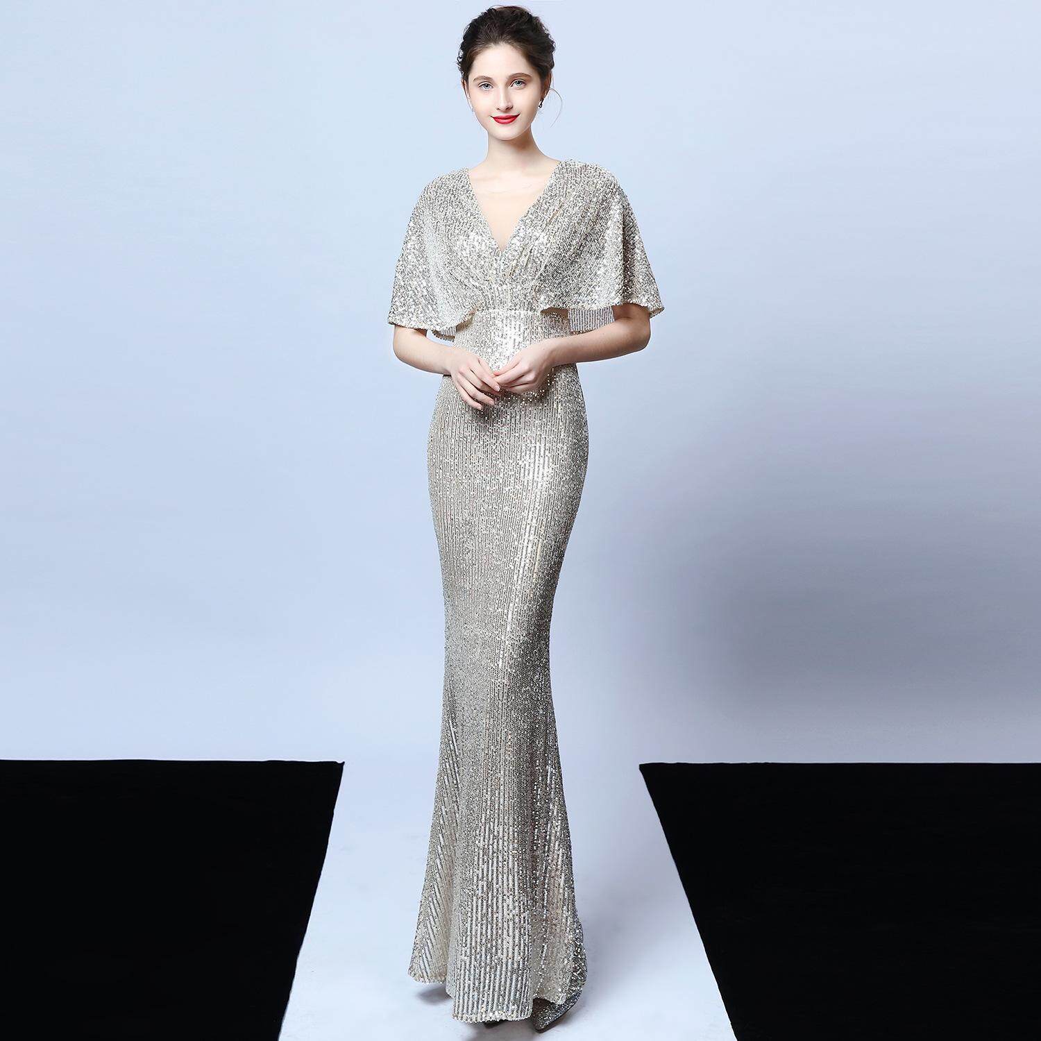 Women Sequin Evening Dresses Prom Party Ball Gown Gold Evening Bridesmaid V Neck Long Dress
