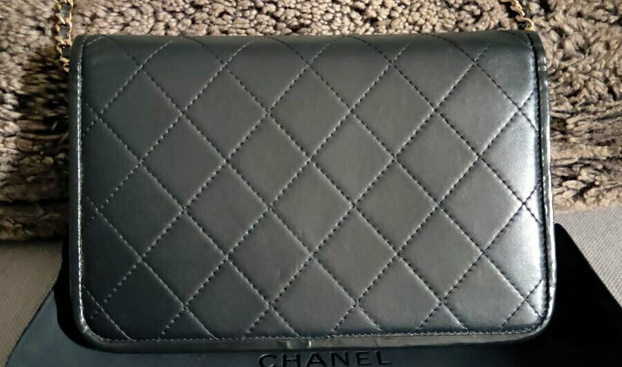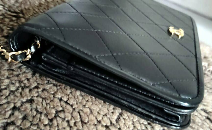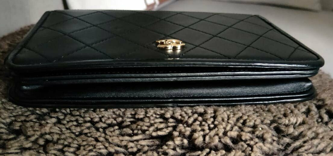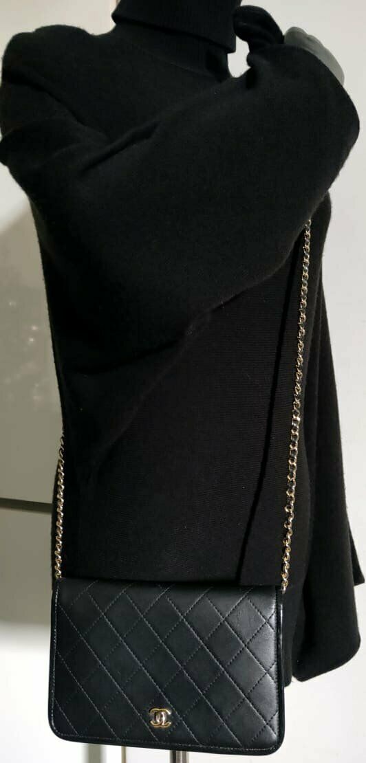 MINT FULL SET Chanel Classic Quilted Black Lambskin WOC Gold Chain Clutch Bag