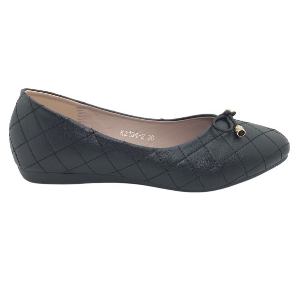 Pair this classic quilted ballerina flats with gold capped ribbon with a long skirt or dress...and feel feminine throughout the day.
