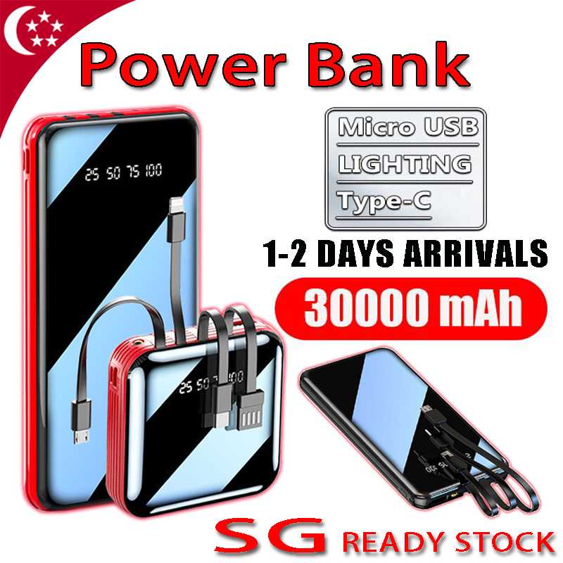 Ready Stock 30000mAh Power Bank Portable Fast Charging Full Screen Built-in 3 Cables Powerbank External Batter