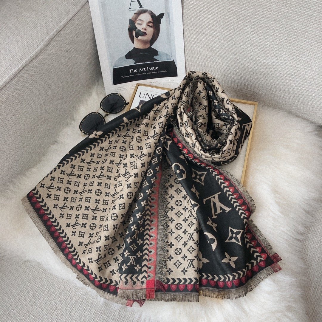 ♀✘ↂ Original LV Scarf Warm Scarf Ladies Cashmere Pure Wool Blanket Cashmere Scarf Neck Headband Headscarf Casual Winter Scarf Shawl Scarf
