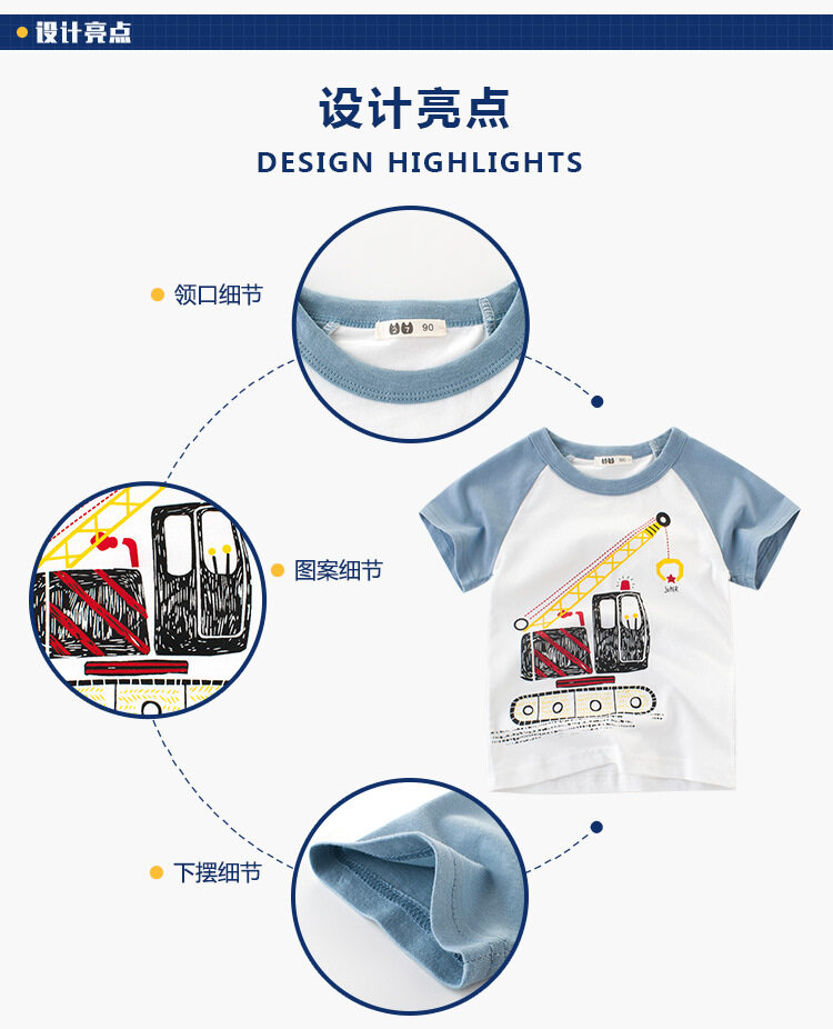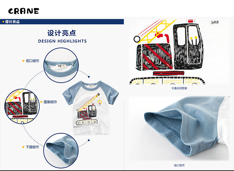 BOYS Summer T-shirt/Children's Top Clothing/100% cotton Short Sleeve/Summer Wear/CRANE