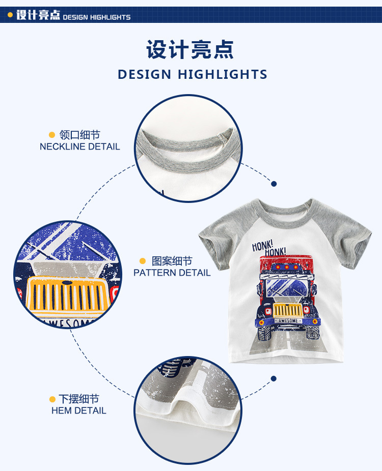 BOYS Summer T-shirt/Children's Top Clothing/100% cotton Short Sleeve/Summer Wear/RED TRUCK