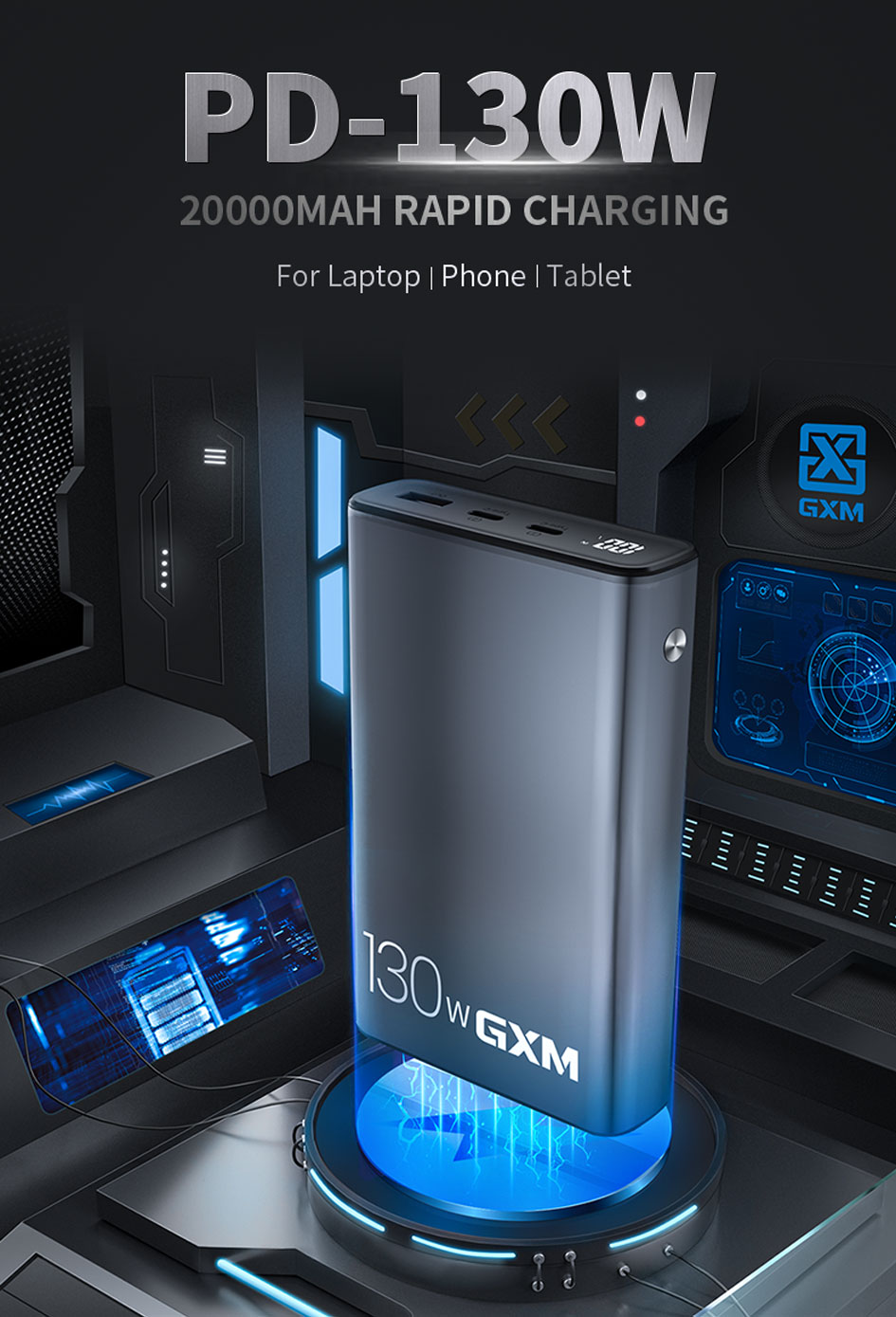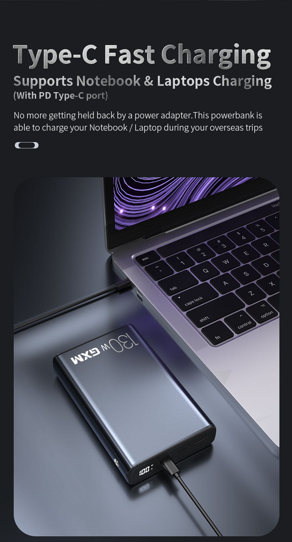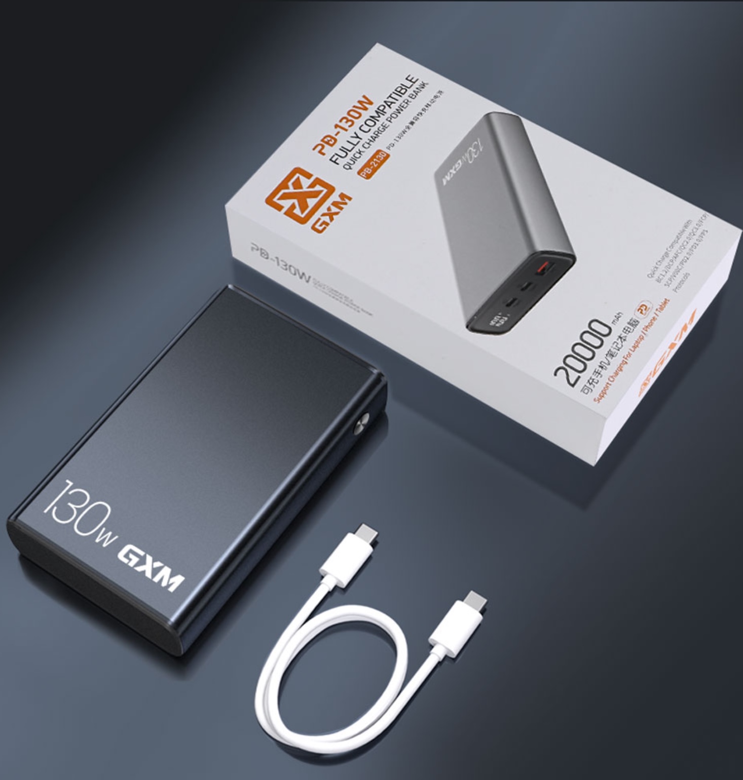 GXM 130W Power Bank 20000mAh PD Fast Charge Type C Charging Light Weight Rapid Charge For Laptop Phone Tablet 120W 100W 65W Portable Charger PowerBank Free 100W Type C Cable