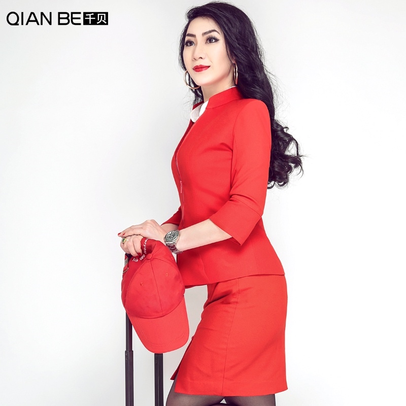♘✵ Customized High-End Professional Wear Women's Suit Summer Red Fashion Classy Goddess Van Asian Airlines Uniform Formal Overalls