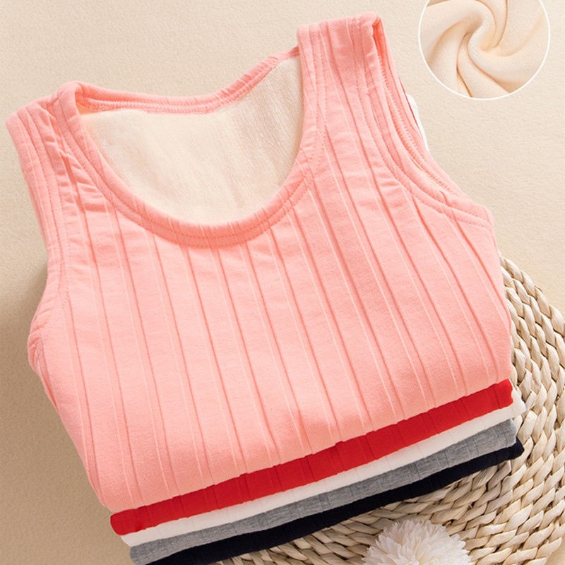 卍◆ Children's Thermal Vest Inner Wear Fleece Autumn Winter Girls Thickened Medium Big Boys Close-Fitting Cotton