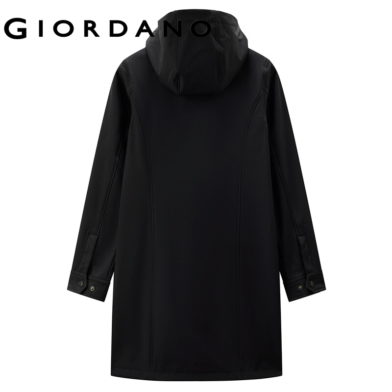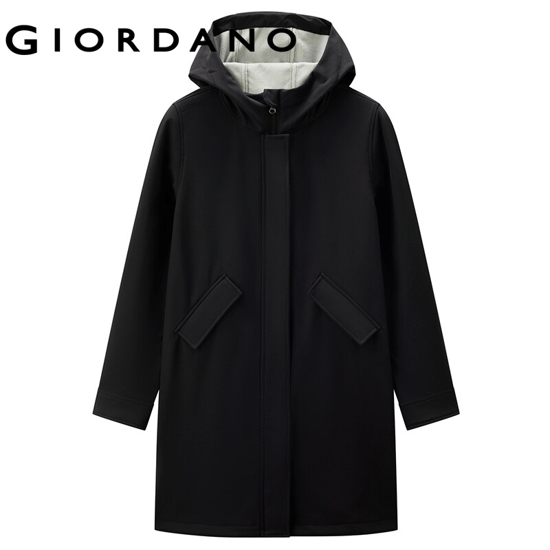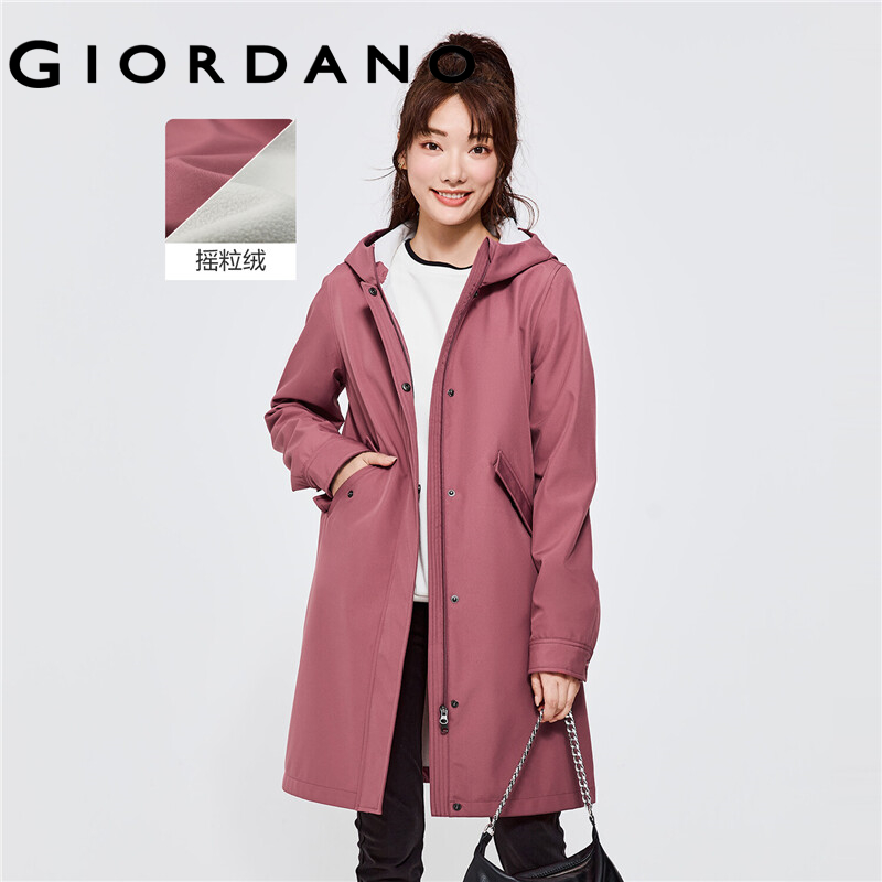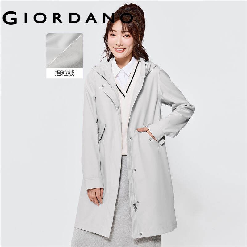 GIORDANO Women Jackets Polar Fleece-Lined Hooded Windbreakers 2-Way Open Zipper Windproof Warm Mid Long Casual Jackets 05372675
