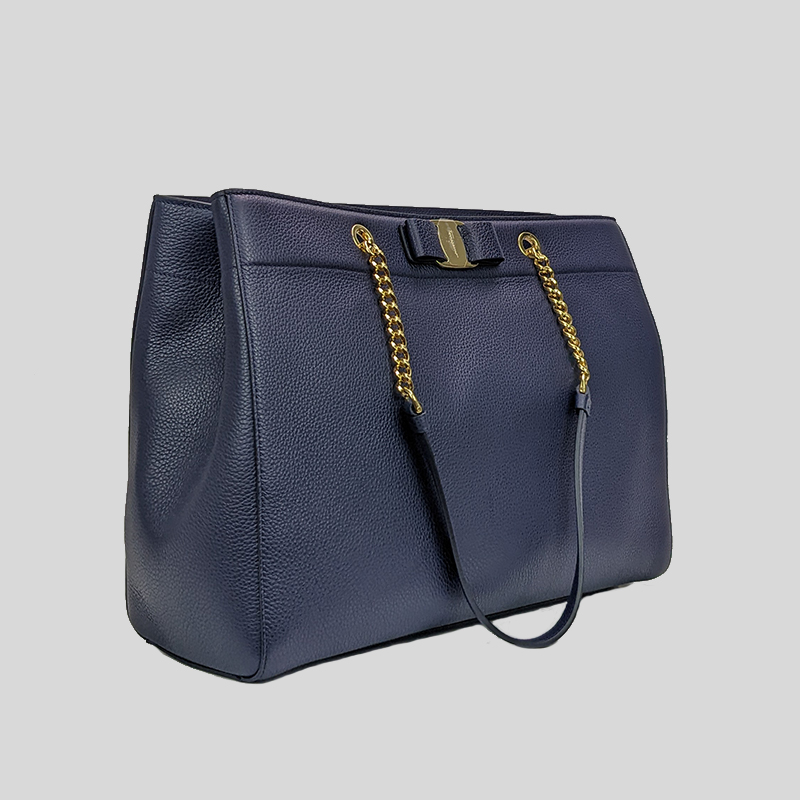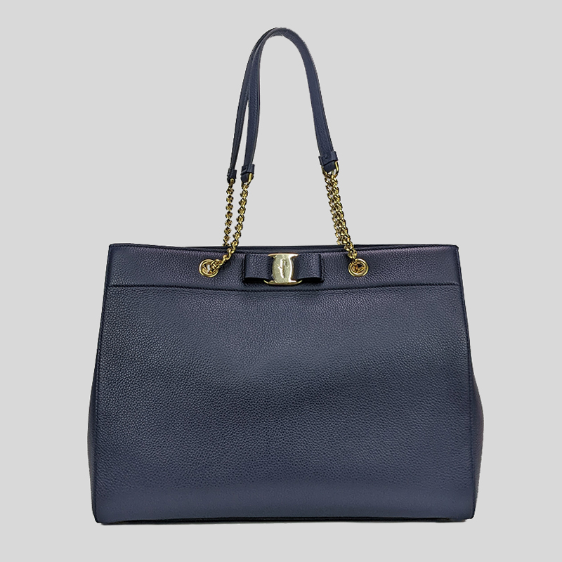 Salvatore Ferragamo Vara Bow Tote Bag Navy Blue 0753245