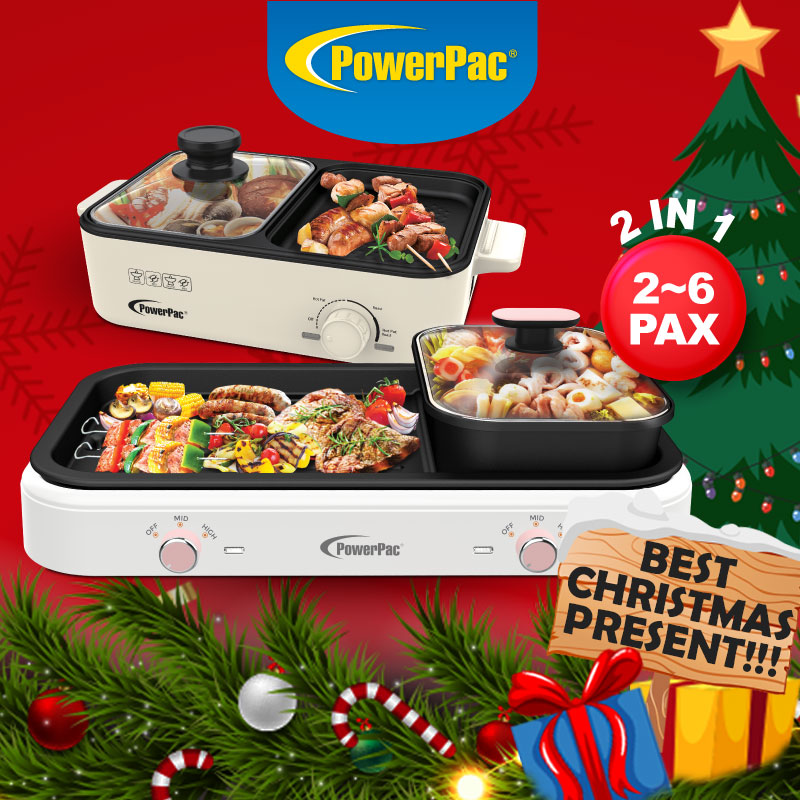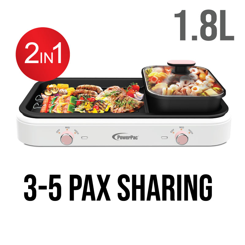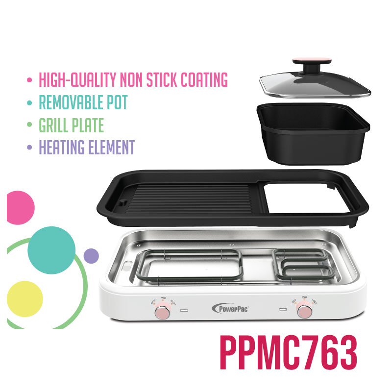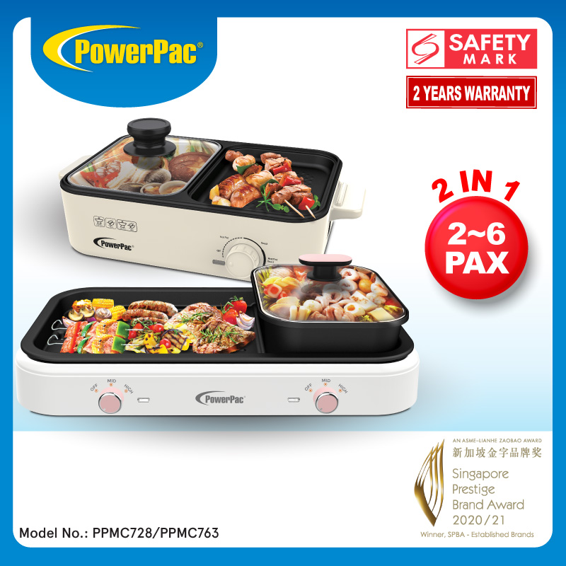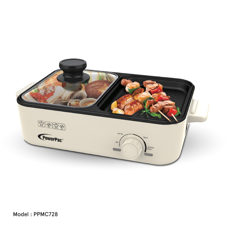 PowerPac Steamboat with BBQ Grill, 2 in 1 Multi Cooker with Non-stick inner pot (PPMC728/PPMC763)