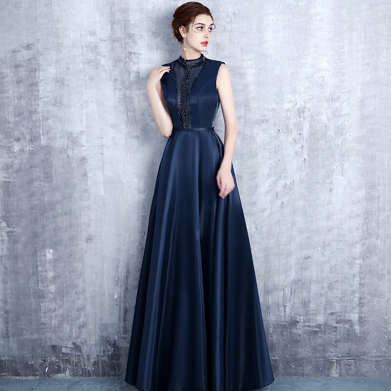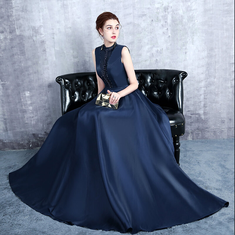 Satin Dress High-End Light Luxury Niche 2022 New High-End Texture Banquet Temperament Host Evening Dress for Women