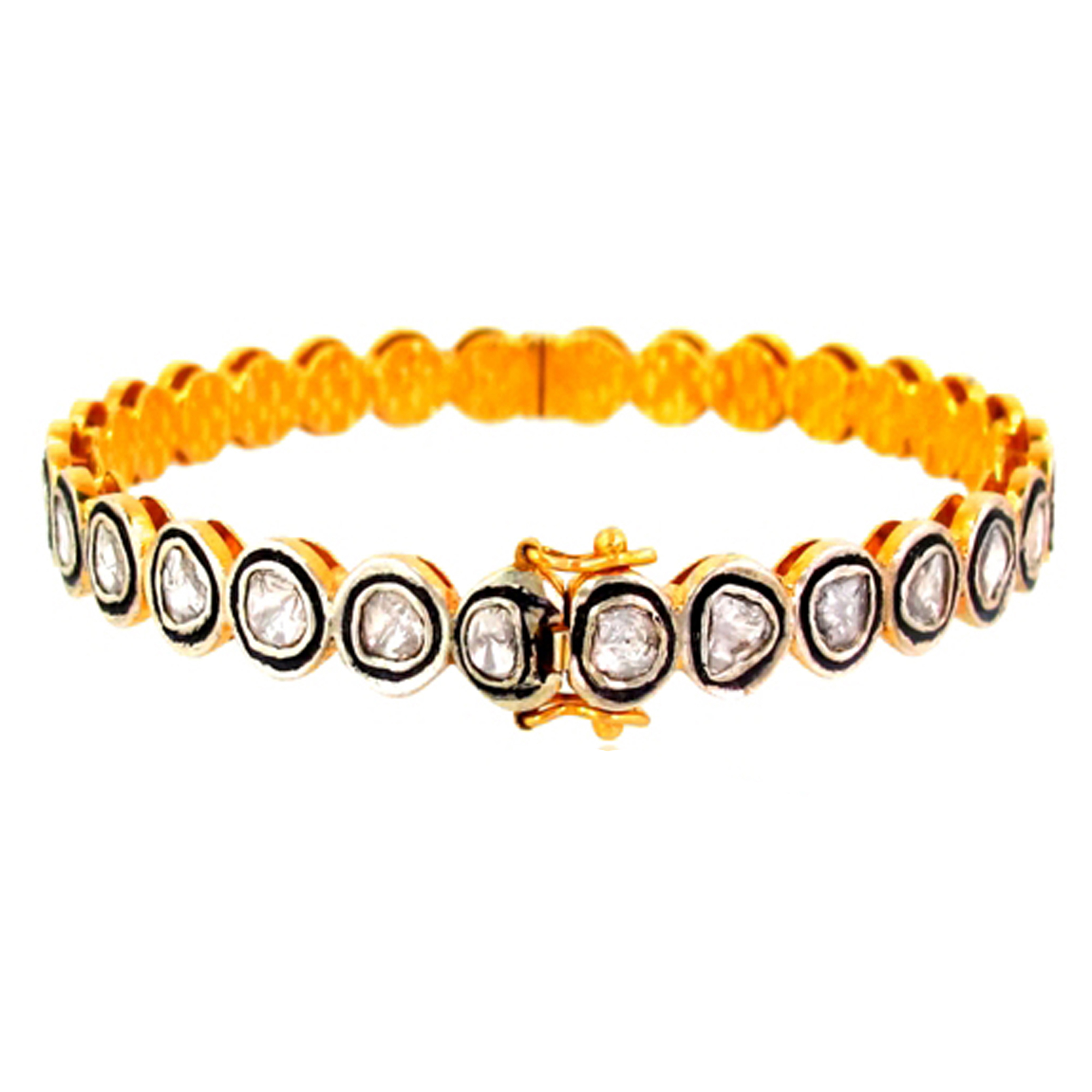 Trendy Solid 18k Yellow Gold Handmade Baguette Diamond Bangle Bracelet Jewelry Manufacturer Natural Diamond Solid Gold Jewelry