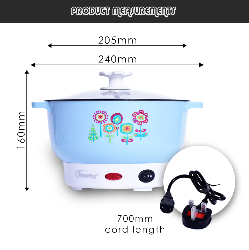 PowerPac Electric Multi cooker 2.0L steamboat noodle cooker hot pot with non stick inner pot (PPMC525)