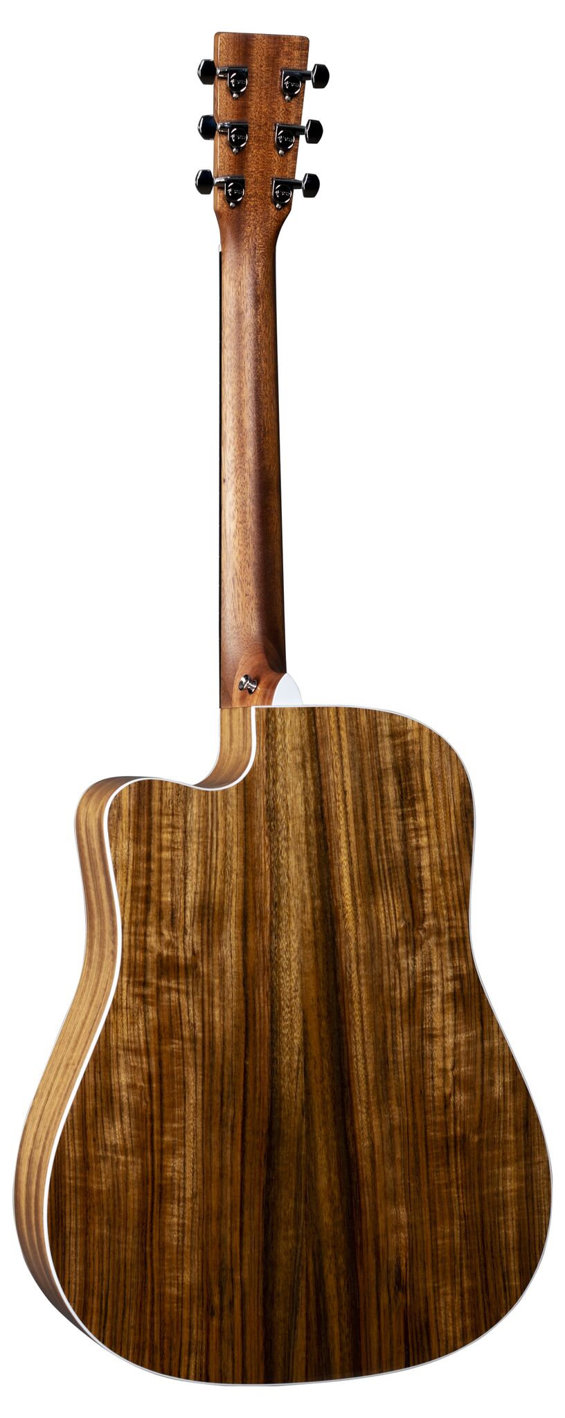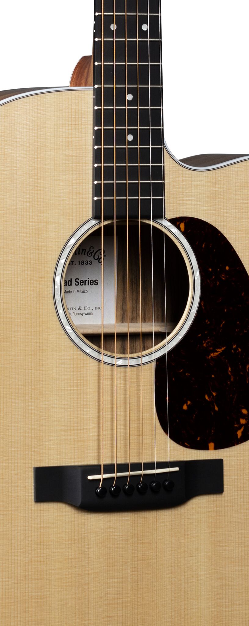 With a gorgeous glossed Sitka spruce top and mutenye back and sides, this solid wood Dreadnought cutaway model is a great sounding guitar at an affordable price. New to this model are stunning mother-of-pearl pattern fingerboard and rosette inlays, a multi-stripe rosette border, and white binding. It has an FSC® Certified Richlite® fingerboard and bridge, gloss body, and a hand-rubbed neck finish. Also new to this model is a Fishman® MX-T electronics package with a built-in soundhole tuner that auto mutes the audio output so you can tune up any time without using a pedal. This guitar comes with a Premium Soft Shell Case so it is Road-ready to join you on all of your adventures!