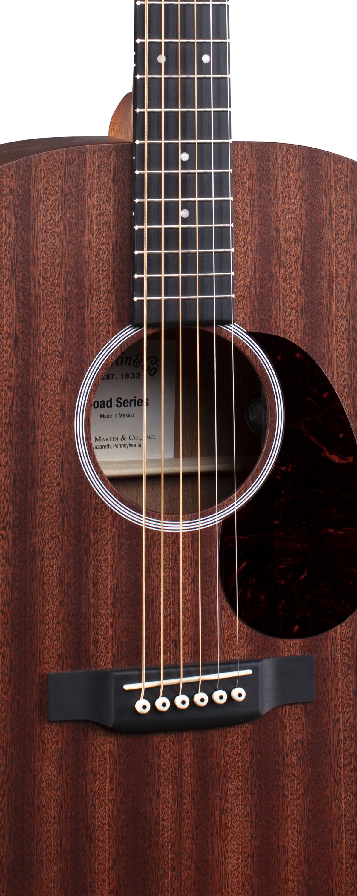 With sapele top, back and sides, this solid wood Dreadnought model is a great sounding guitar at an affordable price. New to this model are stunning mother-of-pearl pattern fingerboard inlays with a multi-stripe rosette border. It has an FSC® Certified Richlite® fingerboard and bridge, satin finish body, and a hand-rubbed neck finish. Also new to this model is the Fishman® MX-T electronics package with a built-in soundhole tuner that auto mutes the audio output so you can tune up any time without using a pedal. This guitar comes with a Premium Soft Shell Case so it is Road-ready to join you on all of your adventures!