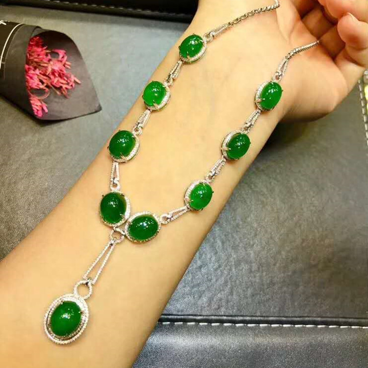 18k gold South Africa real diamond 9.9+27.9ct natural green plain emerald beaded necklace for women collana da donna