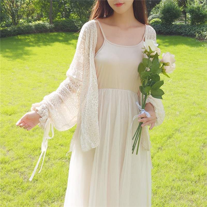 Crochet translucent lace beachwear bell sleeve blouse top sun block bikini cover up loose fit outerwear jacket pretty clothes BLS111